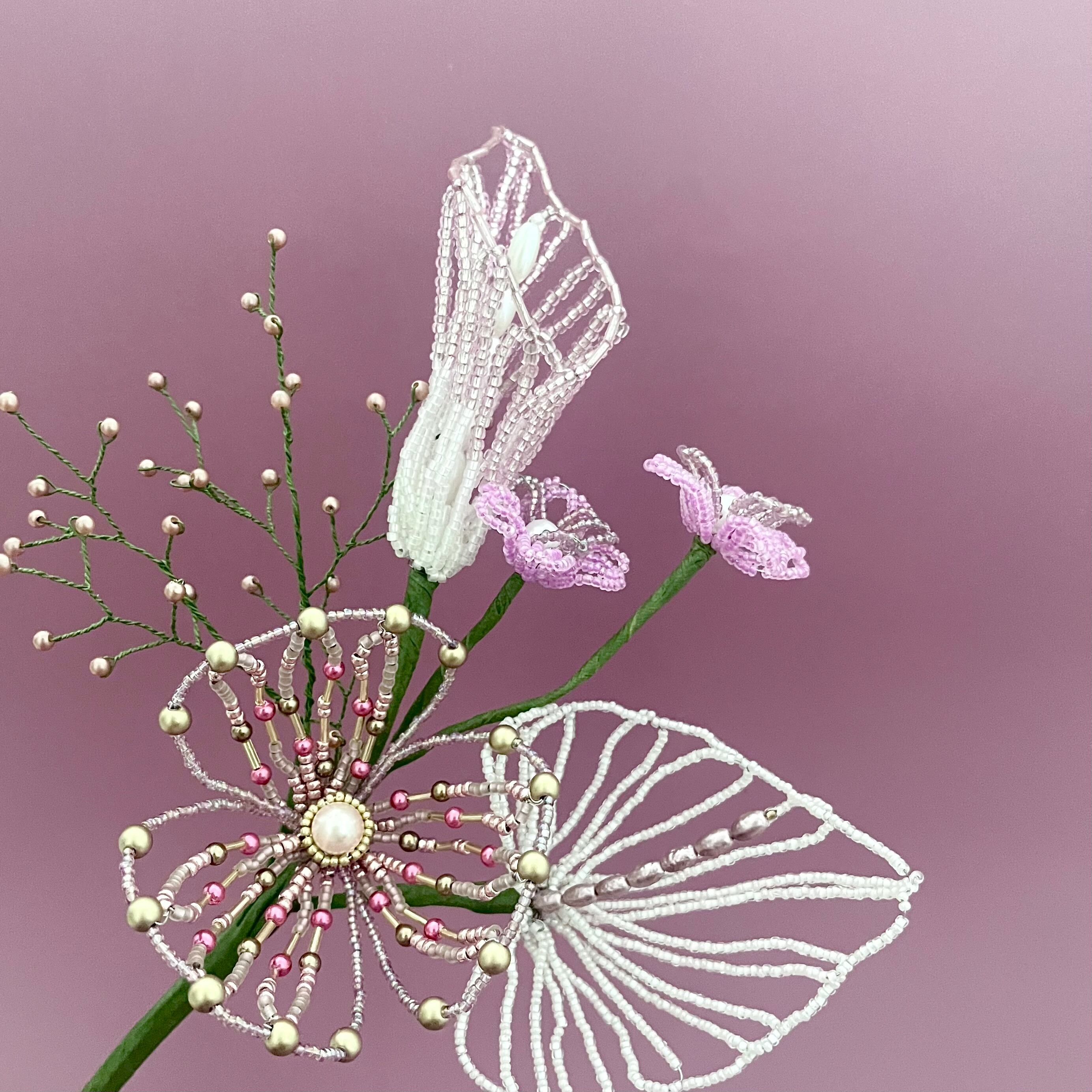 ビーズフラワー ブーケ(ピンク/ホワイト)