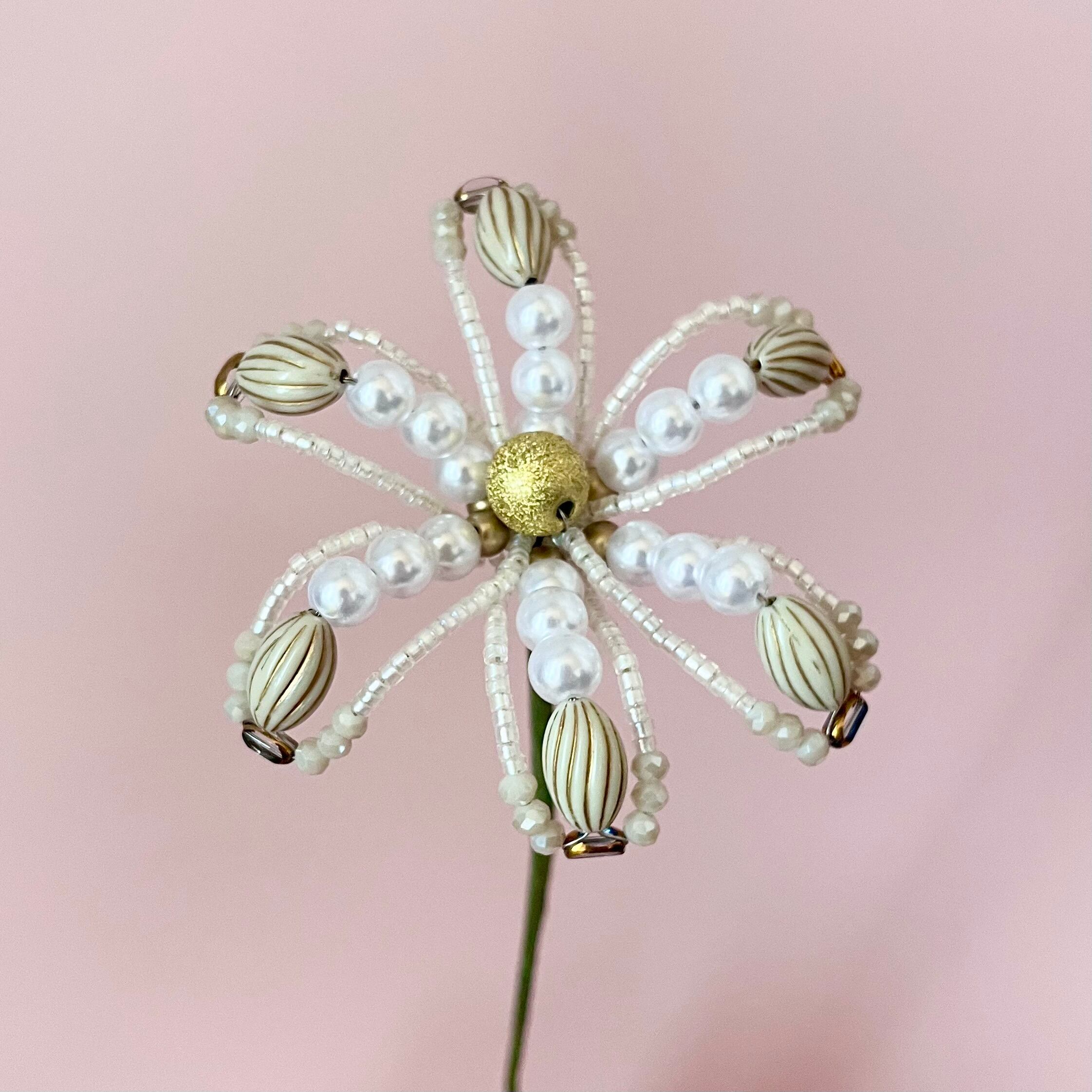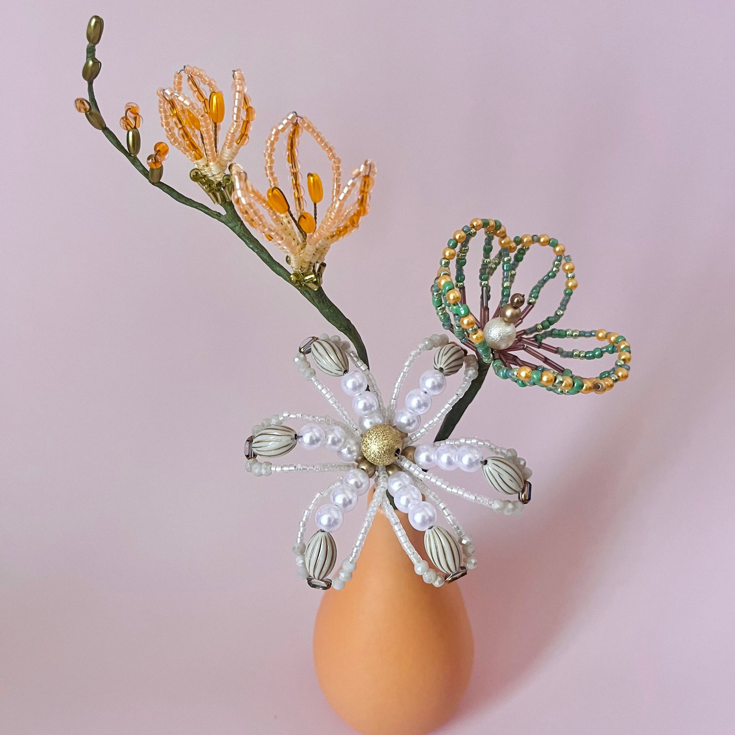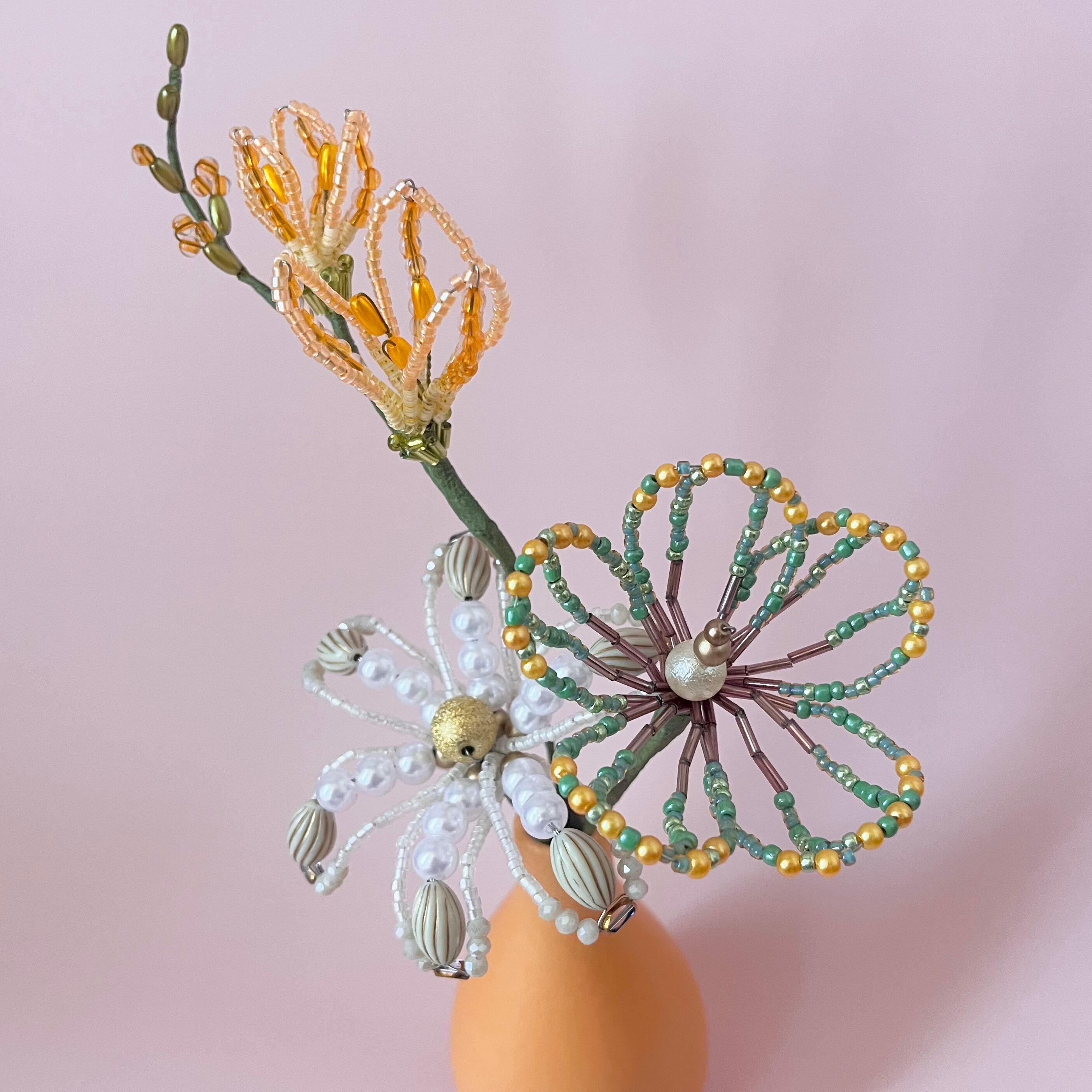 ビーズフラワー ブーケ(オレンジ/ホワイト/グリーン)