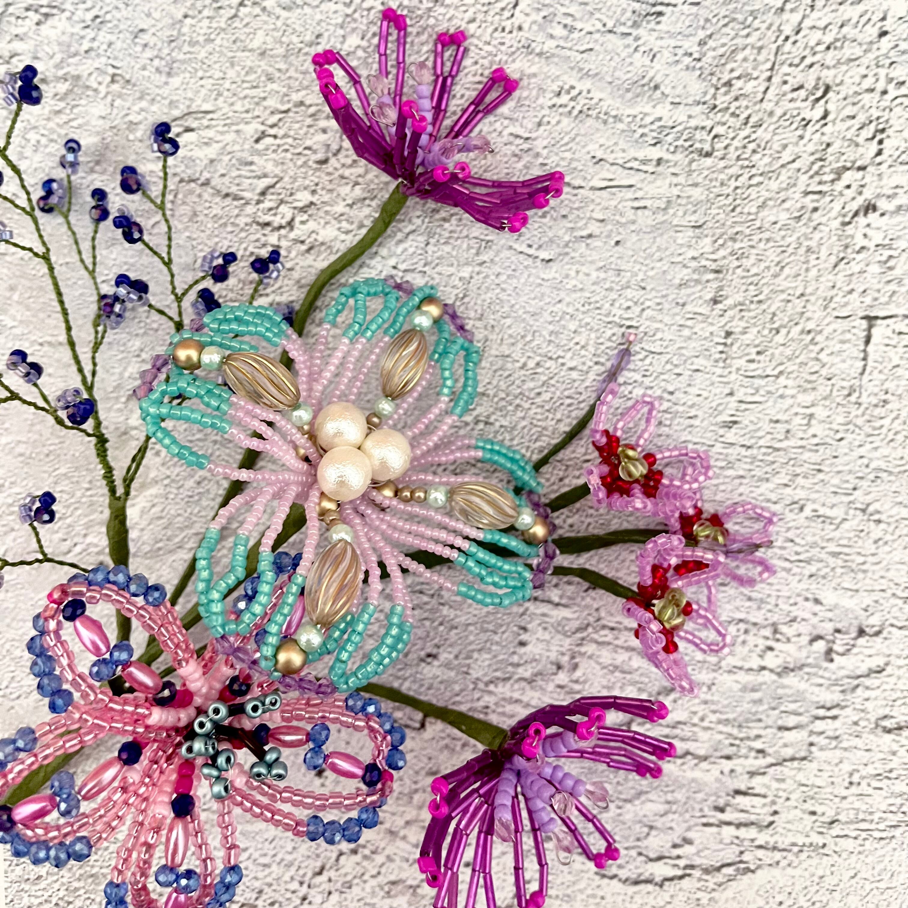 ビーズフラワー ブーケ(パープル/ピンク/ターコイズブルー)