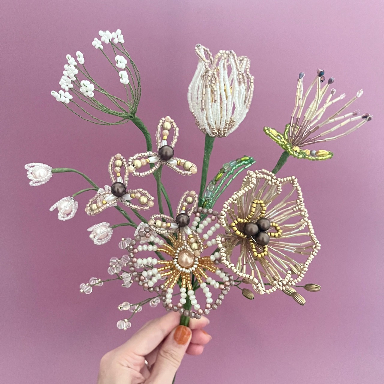ビーズフラワー ブーケ(ベージュ/ブラウン/ゴールド)