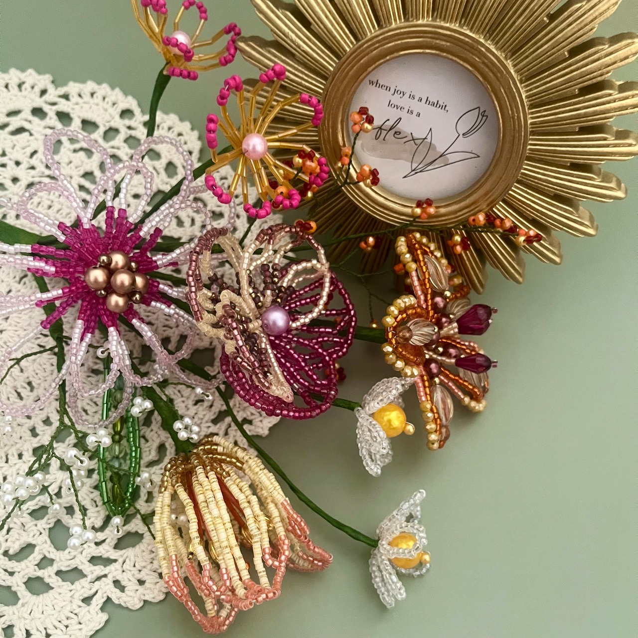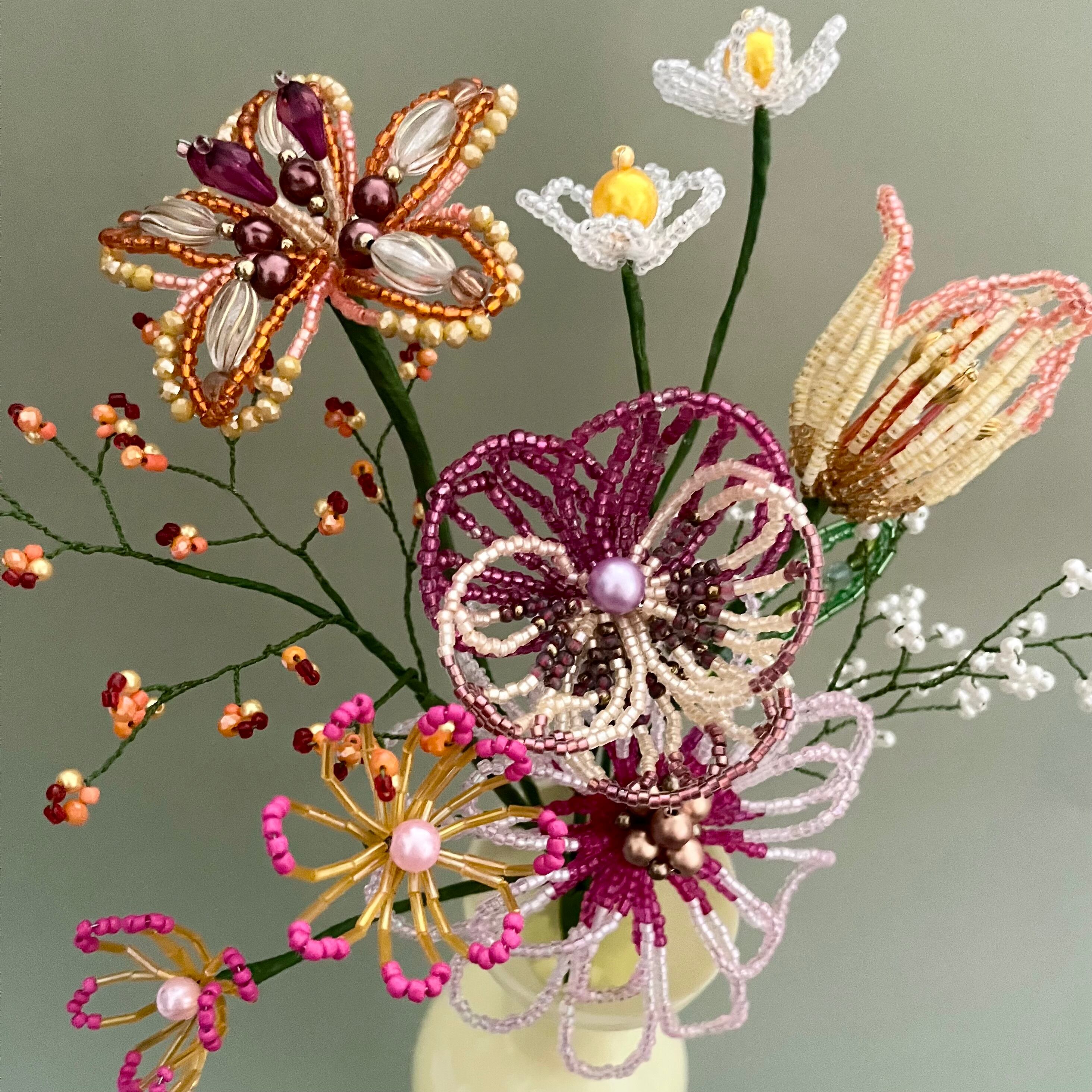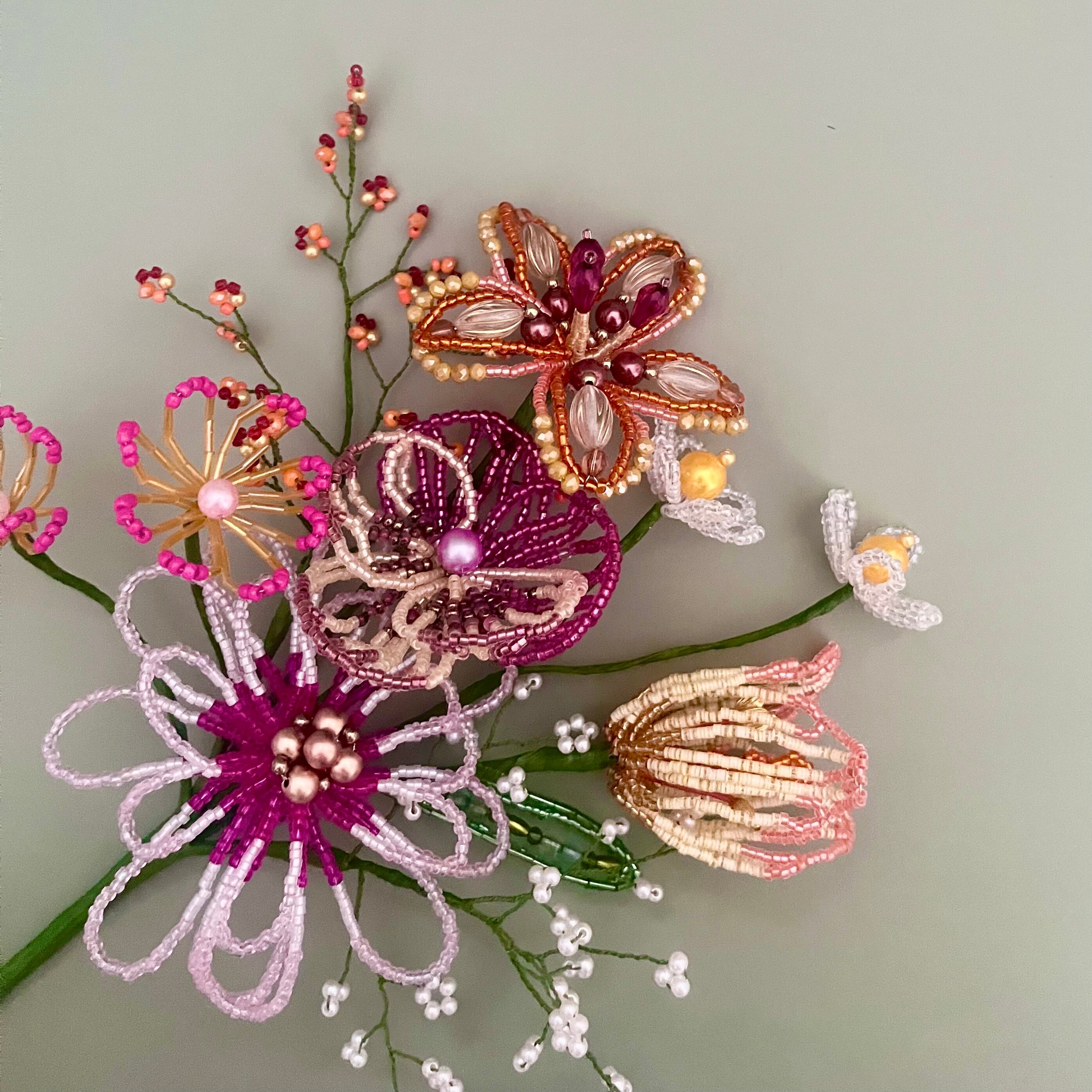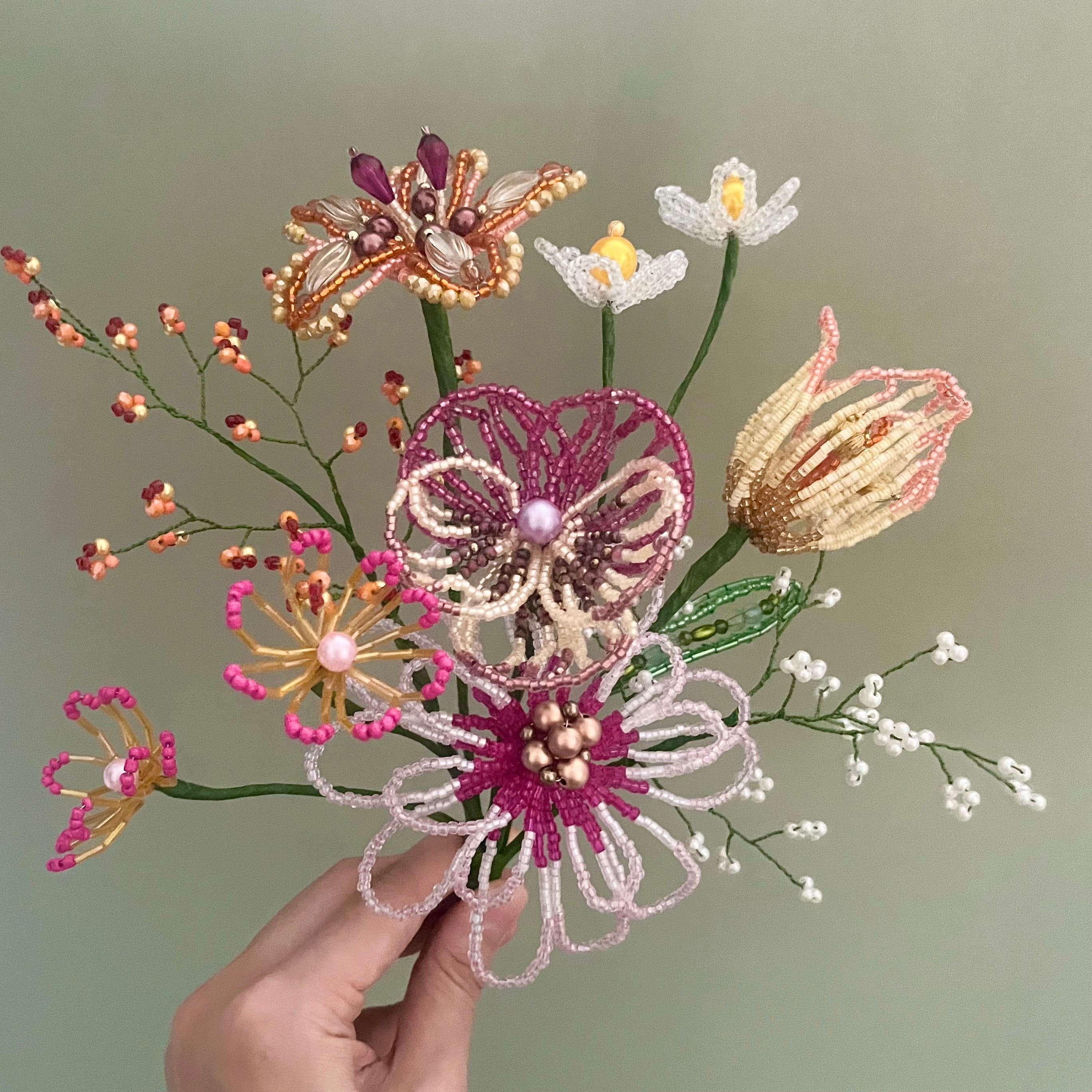 ビーズフラワー ブーケ(ピンク/オレンジ)
