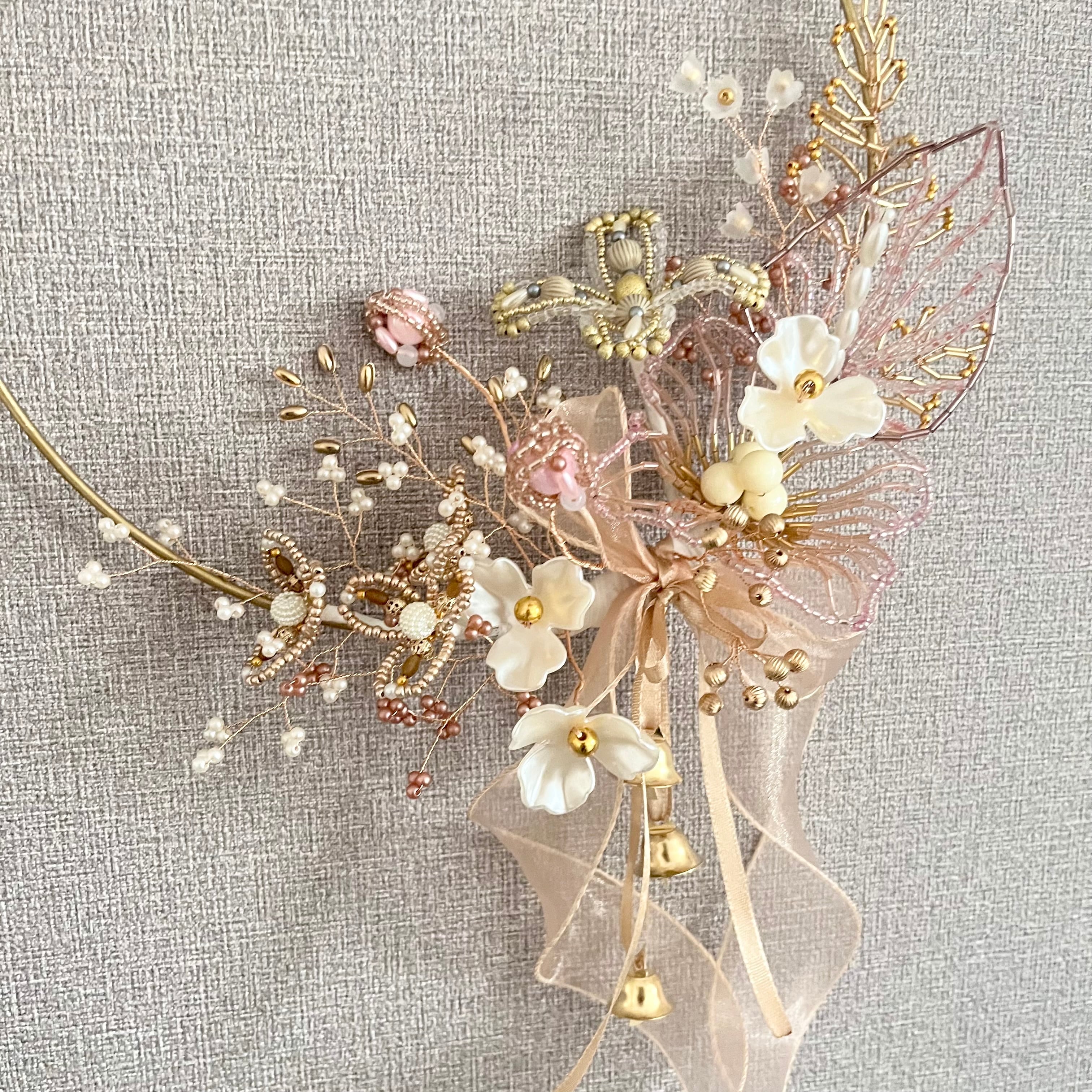 ご自身でご用意される場合、サイズが小さすぎたり軽量のものだと、ビーズフラワーの重さに耐えれず倒れる可能性があるため、陶器やガラス等の重量があるものや、ブーケと同じくらいのサイズ感のものをご用意いただくことをお勧めいたします。