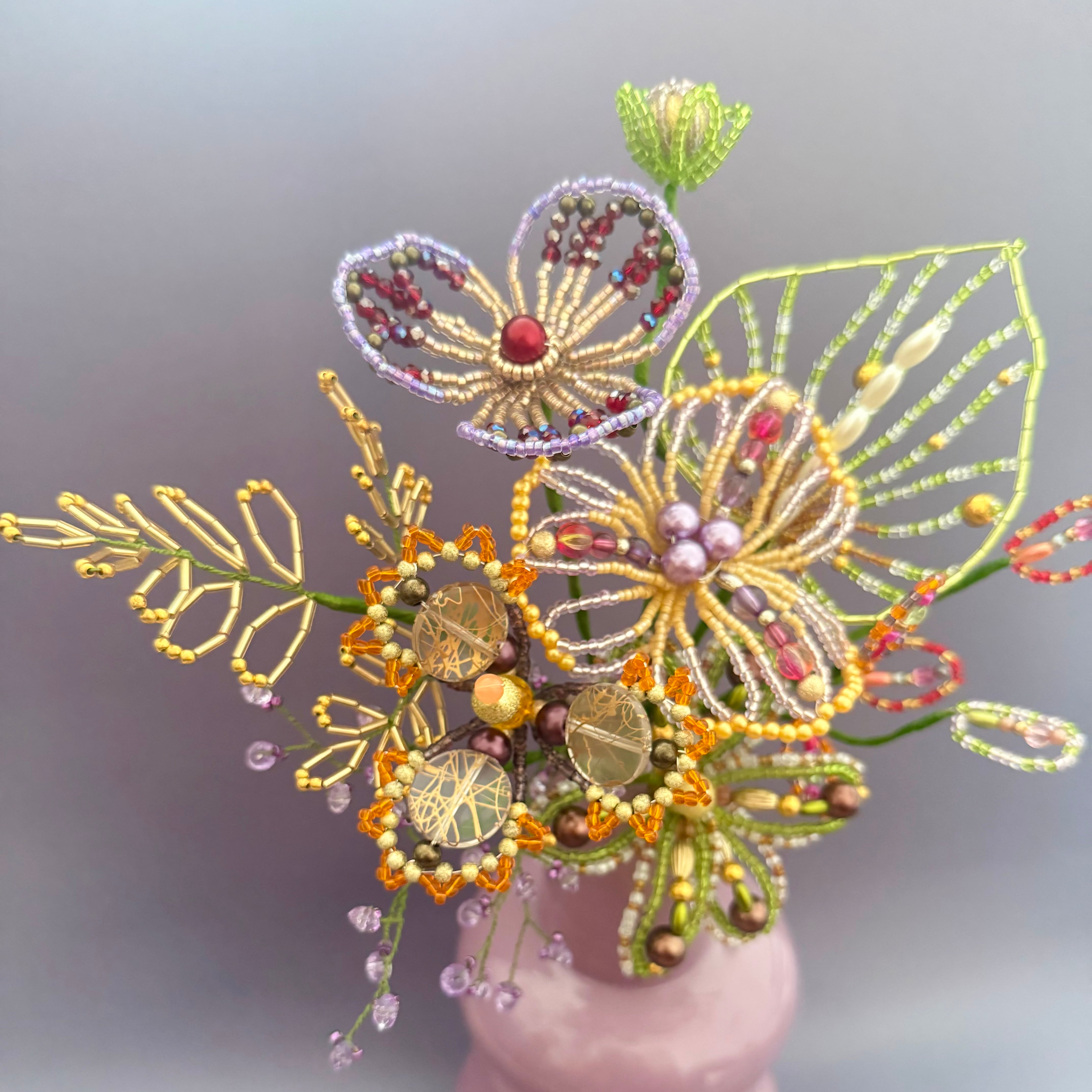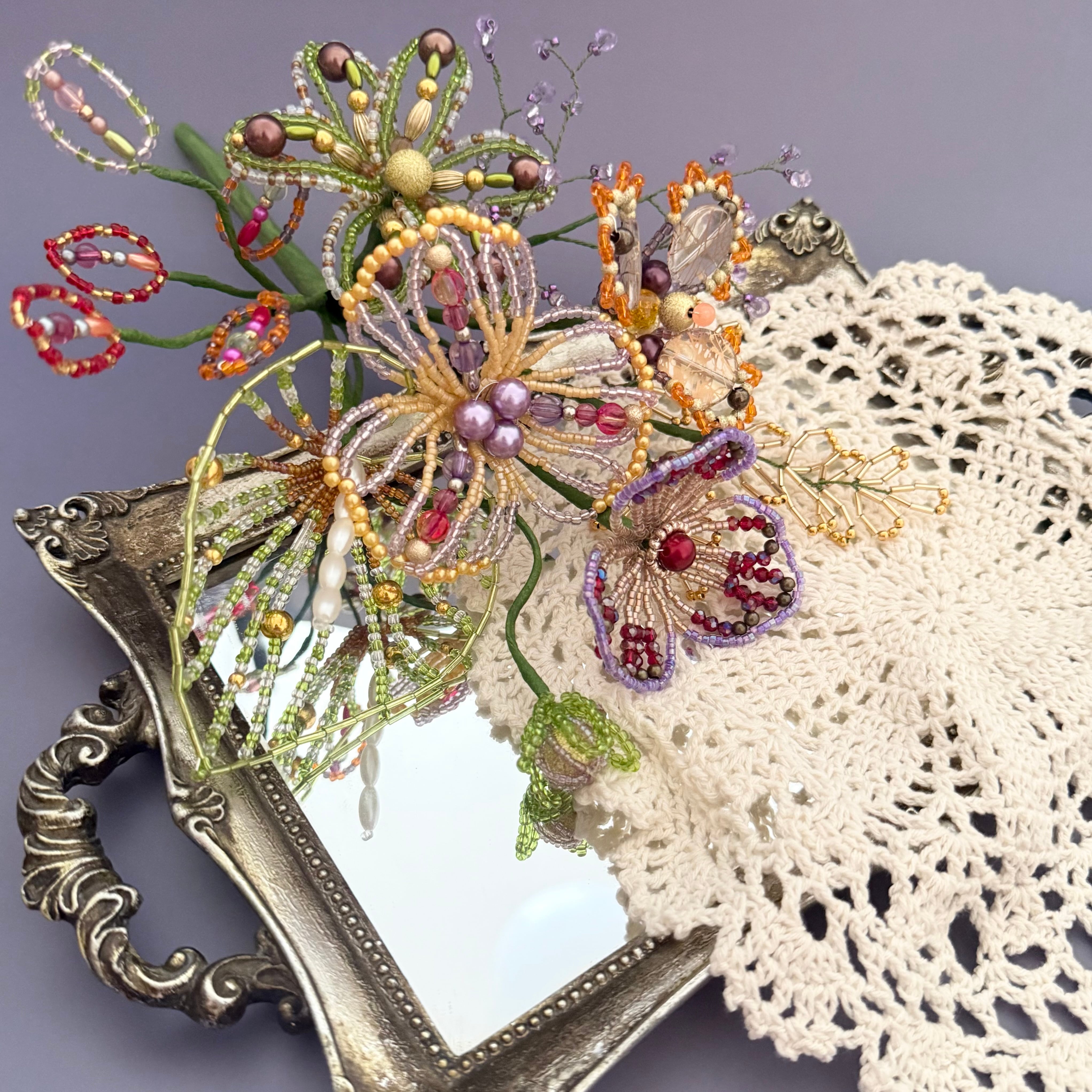 大人な色合わせのビーズフラワー