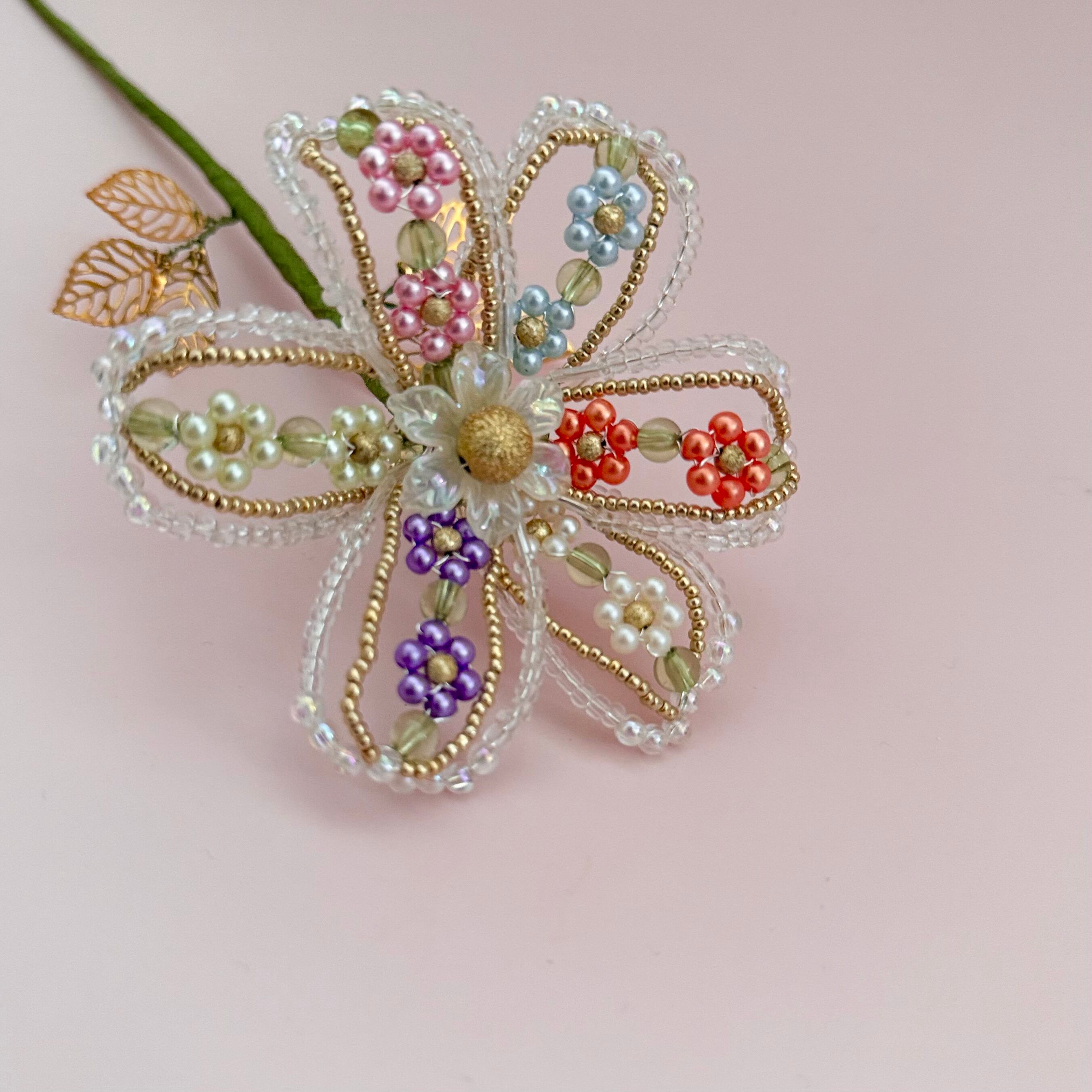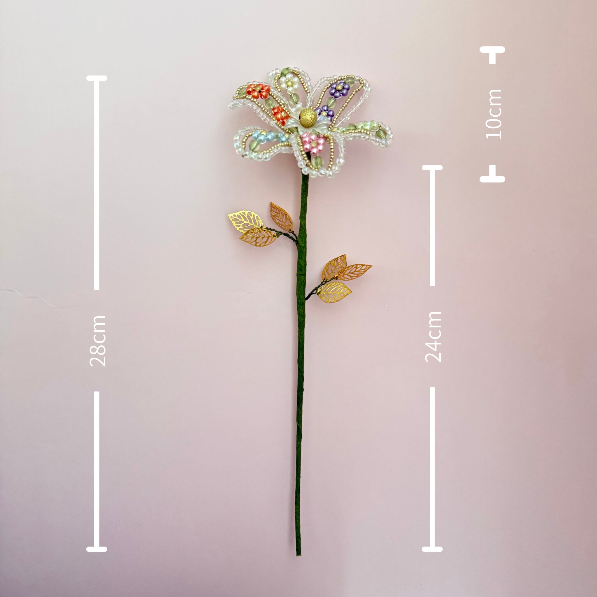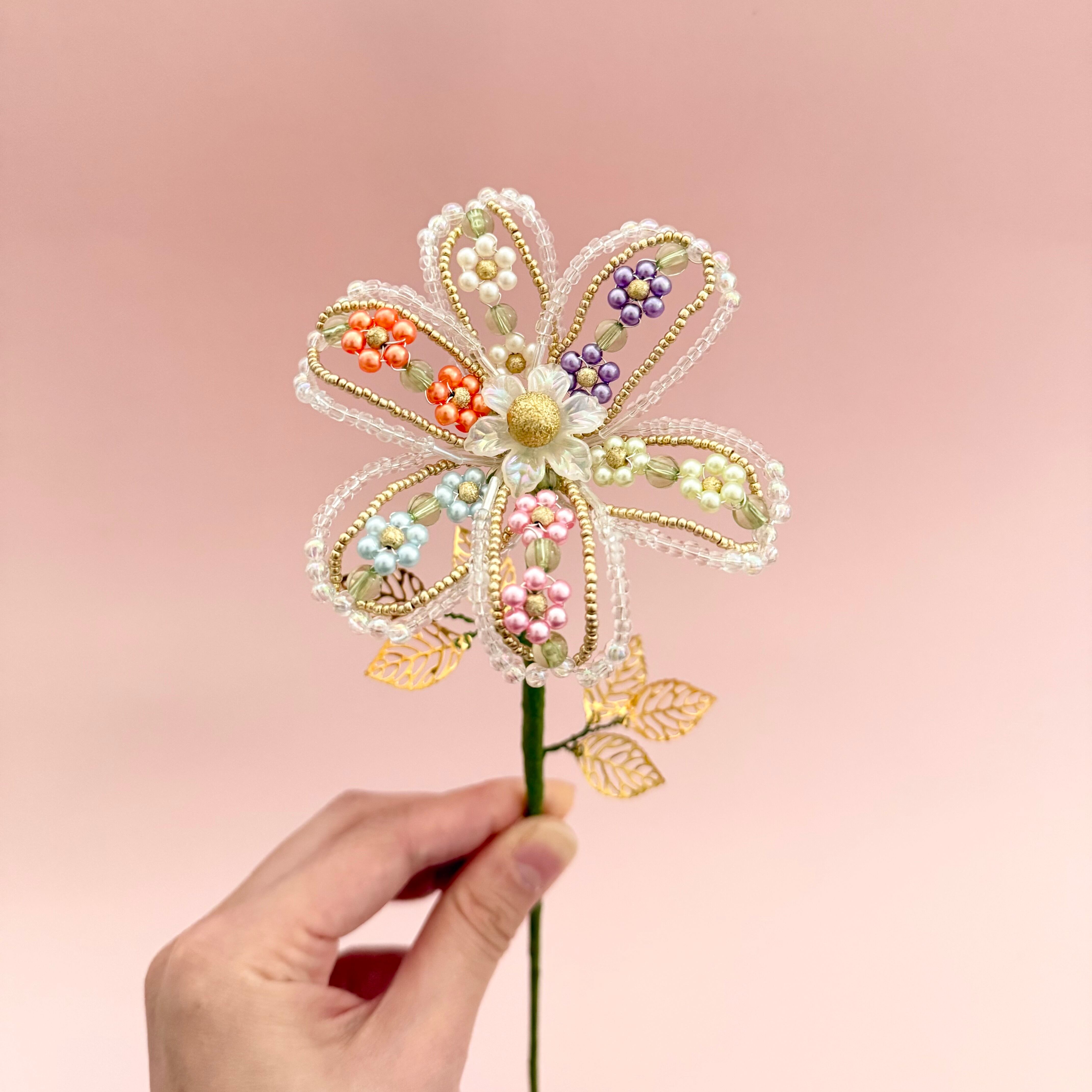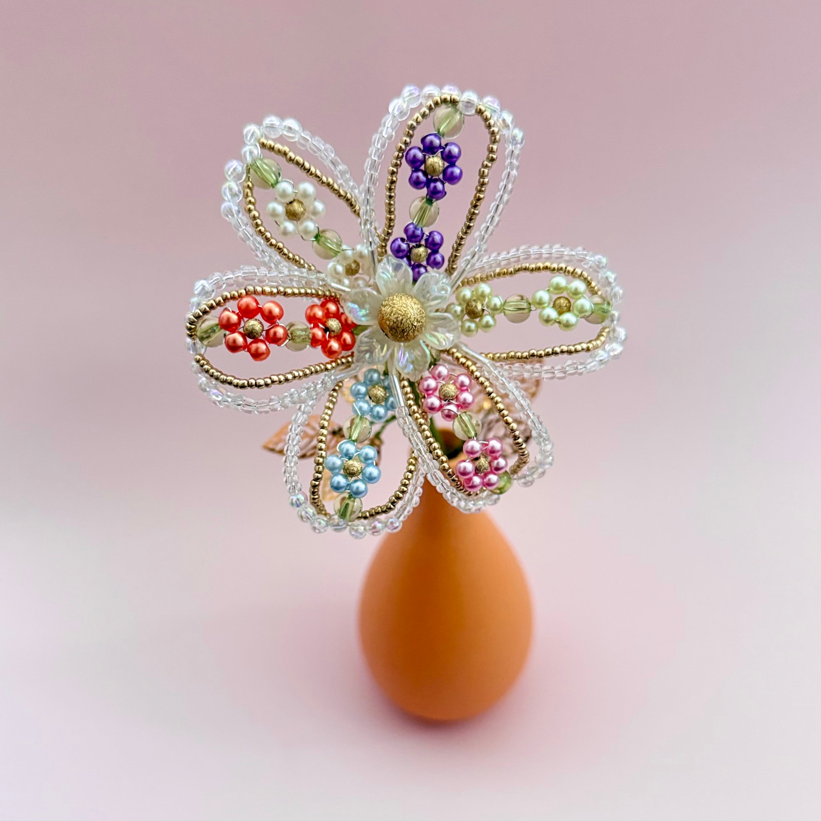 ご自身でご用意される場合、サイズが小さすぎたり軽量のものだと、ビーズフラワーの重さに耐えれず倒れる可能性があるため、陶器やガラス等の重量があるものや、ブーケと同じくらいのサイズ感のものをご用意いただくことをお勧めいたします。