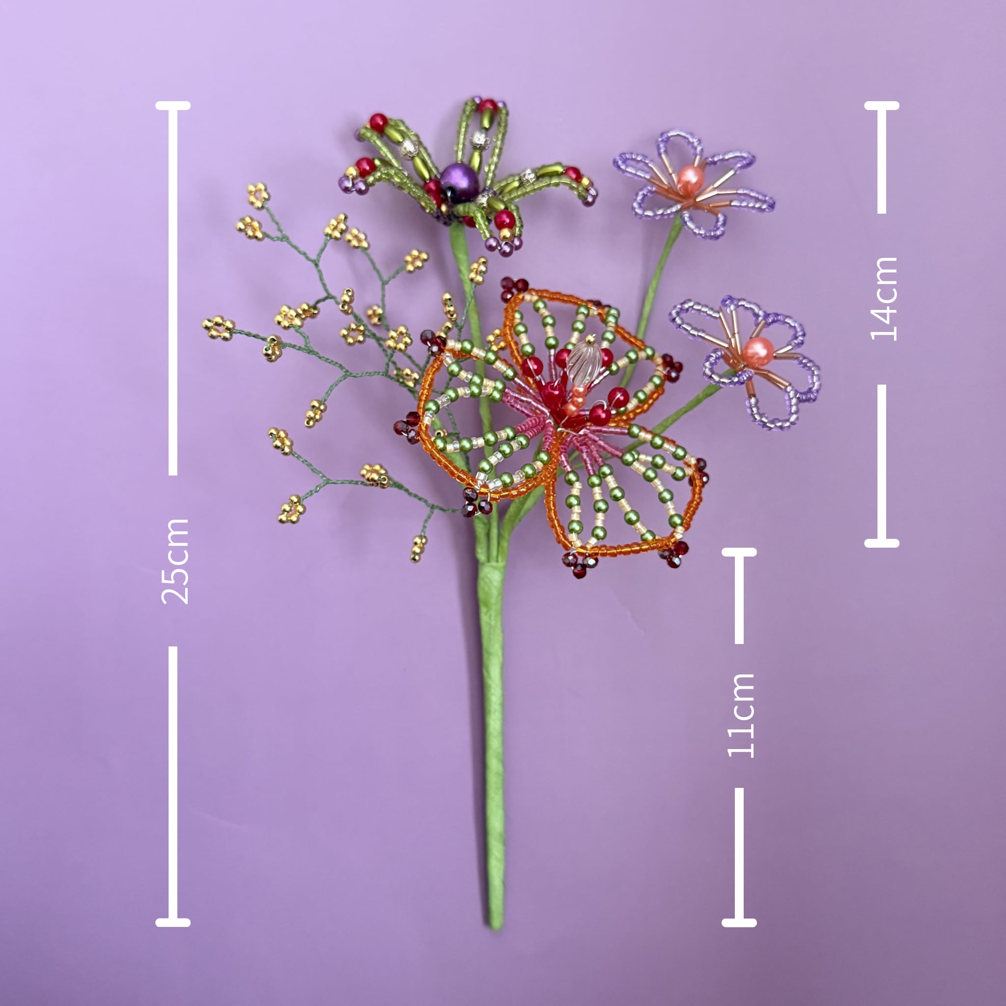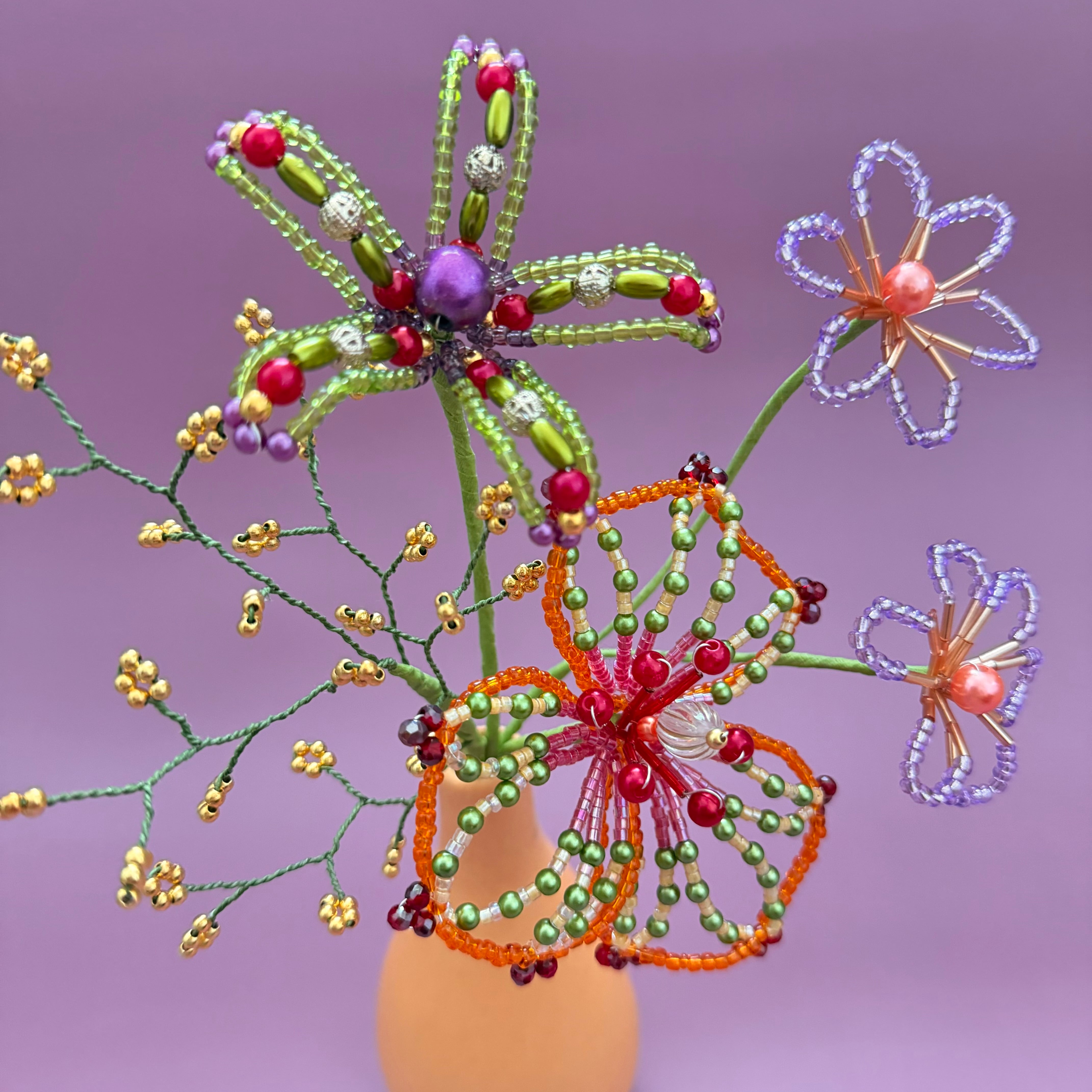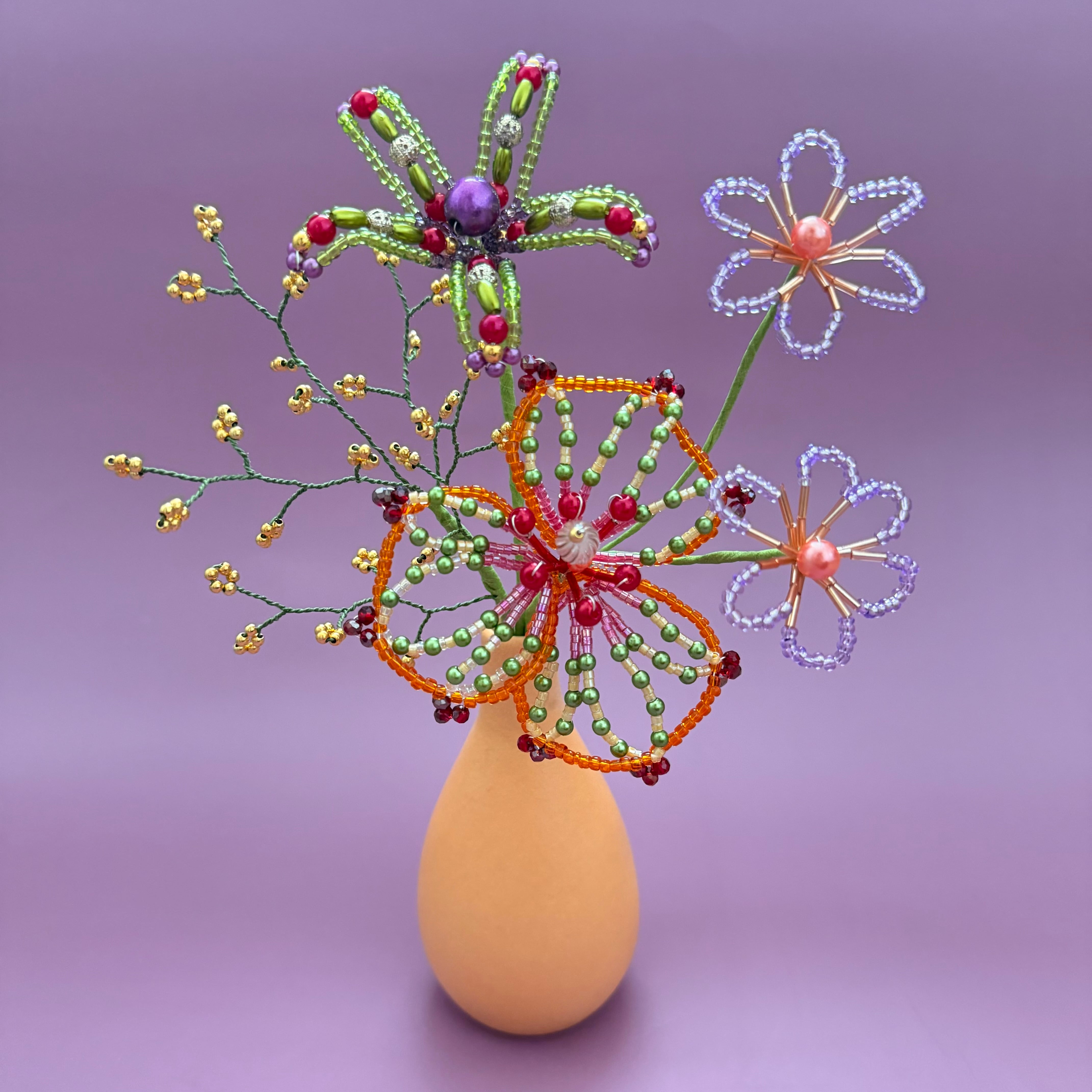 ビーズフラワー ブーケ(オレンジ/グリーン/パープル)