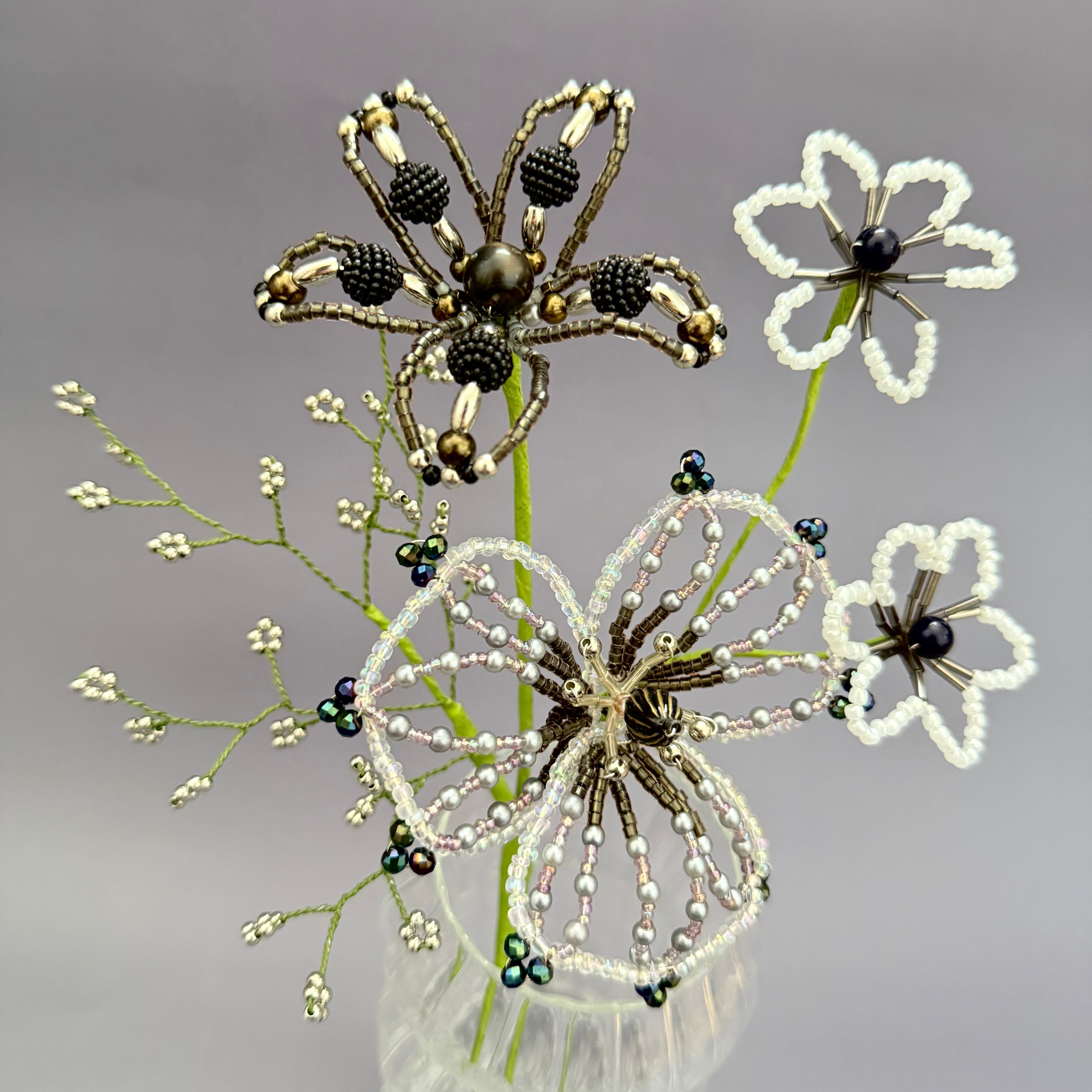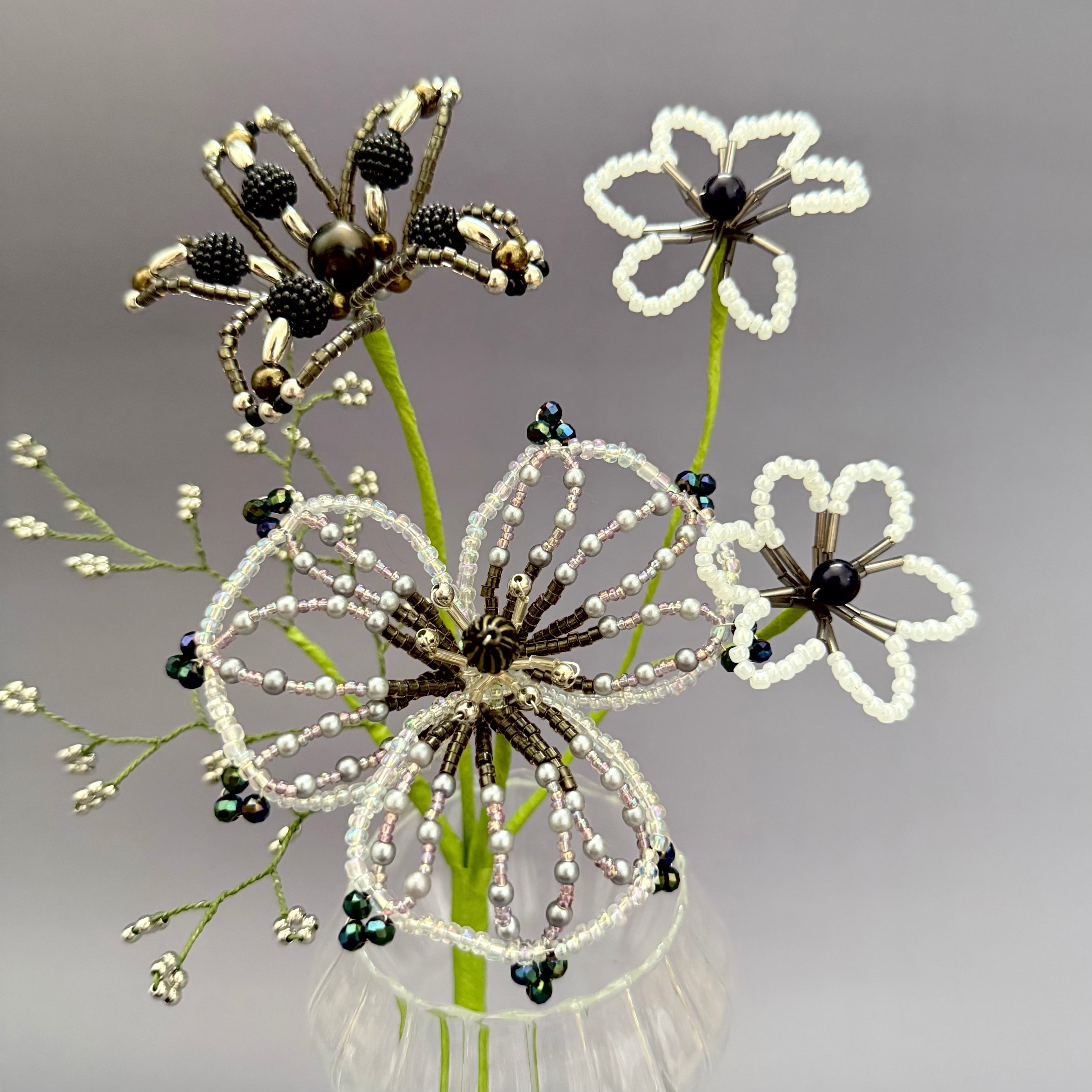 ビーズフラワー ブーケ(ブラック/ホワイト)