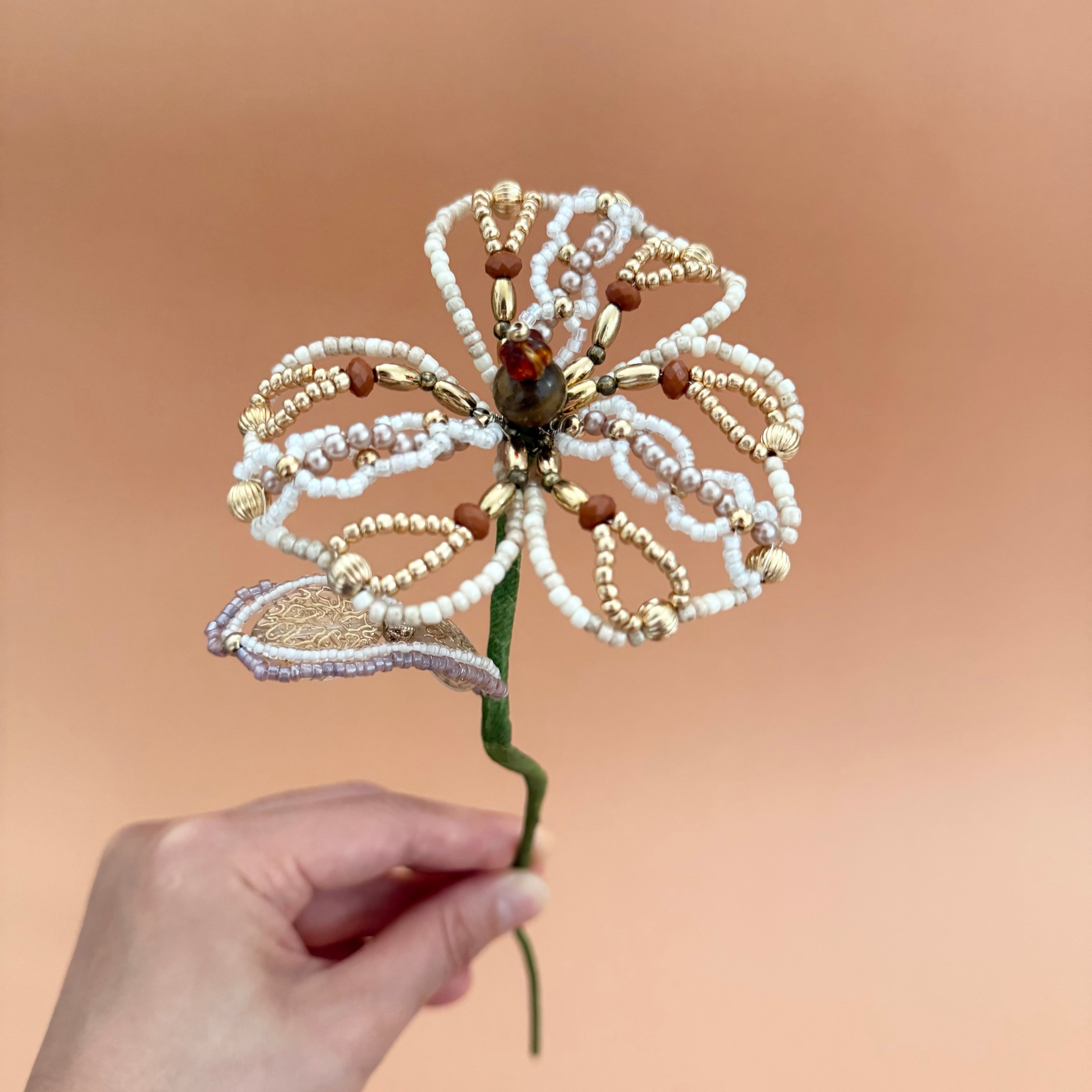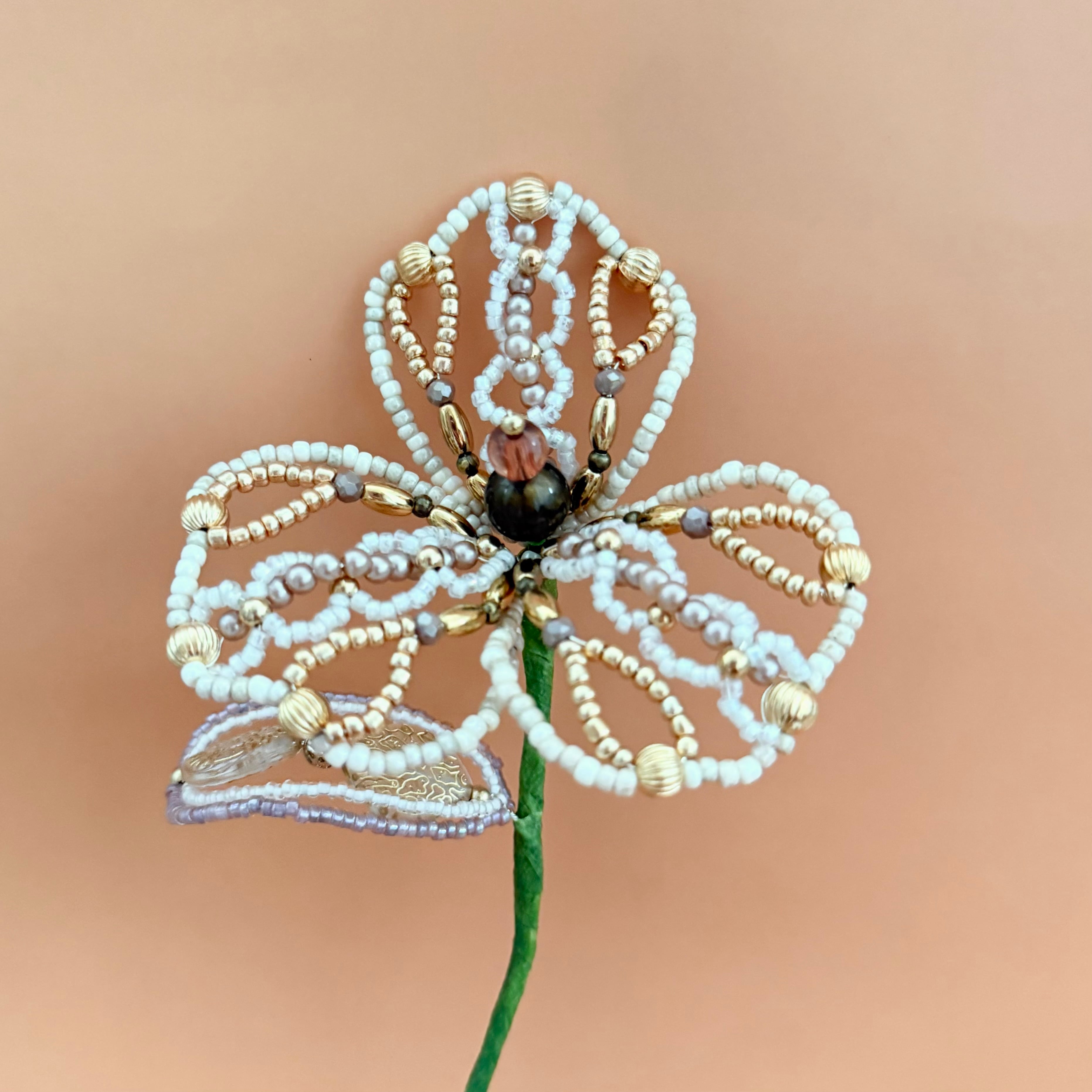 ビーズフラワー ベージュ(1本)