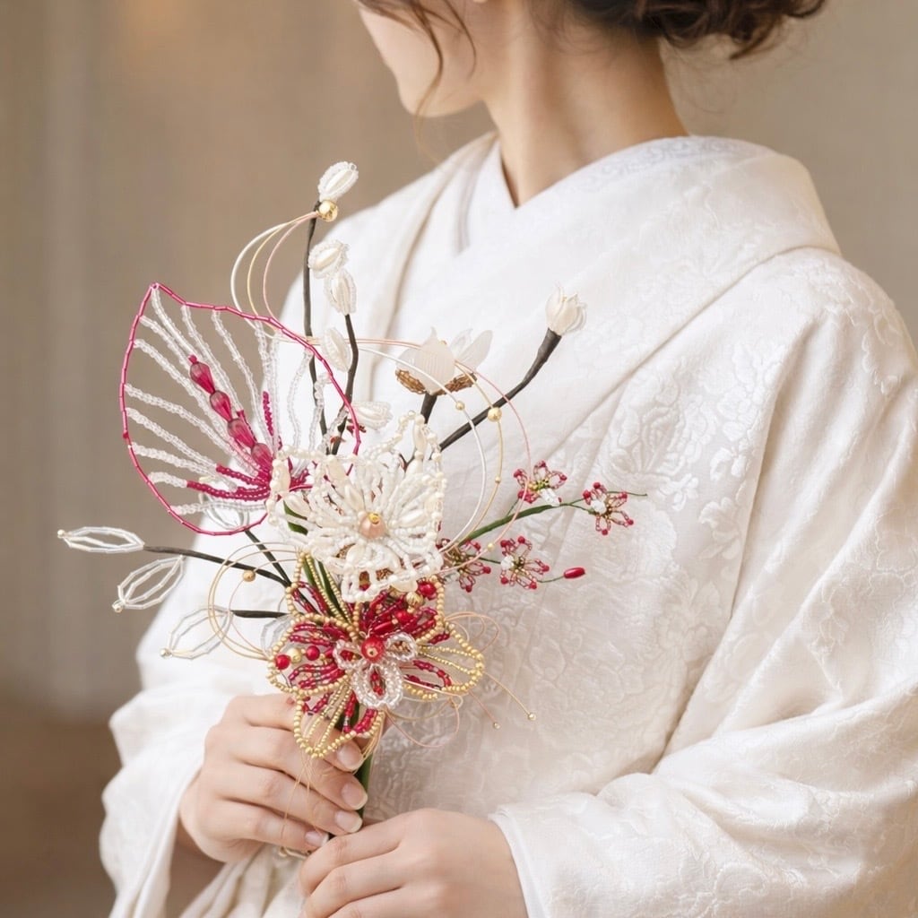 オーダーブーケ ビーズフラワー ウェディング 前撮り 和装
